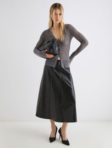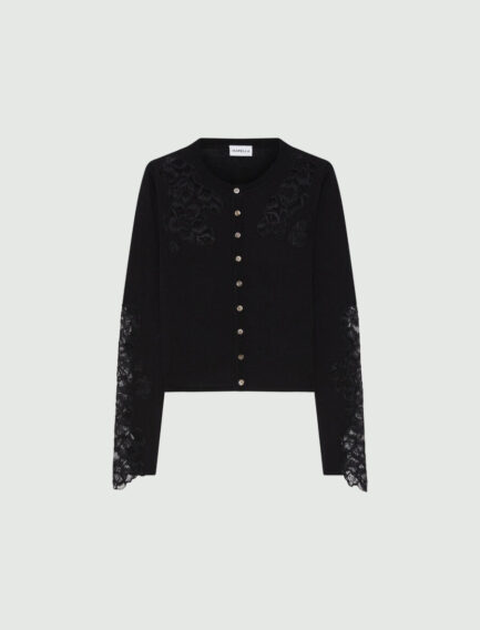 Cardigan in lana con dettaglio in micro paillettes – GRIGIO MELANGE