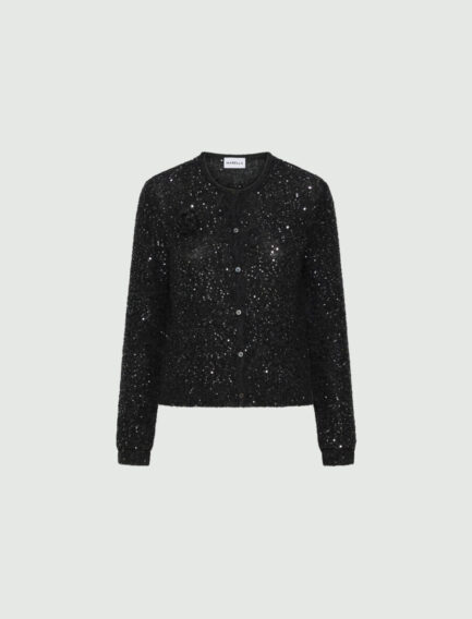 Cardigan in misto cashmere con paillettes – GRIGIO SCURO
