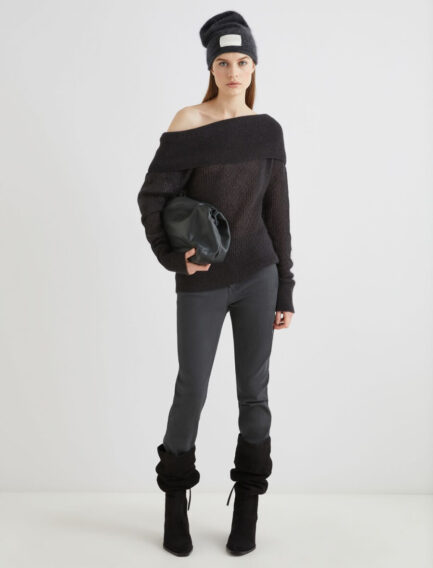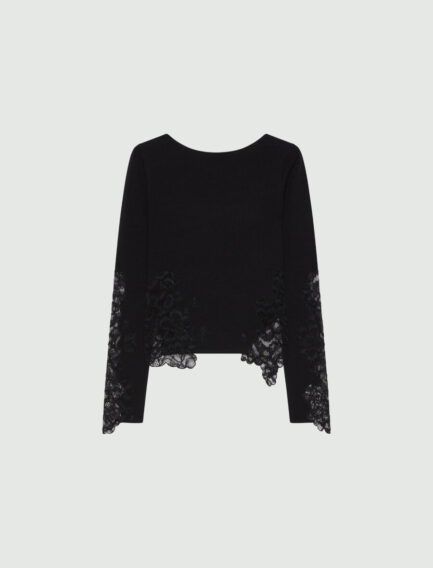 Maglione aderente con pizzo – NERO