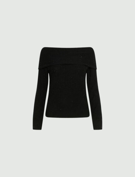 Maglione con collo a cappuccio decorato con micro paillettes – NERO