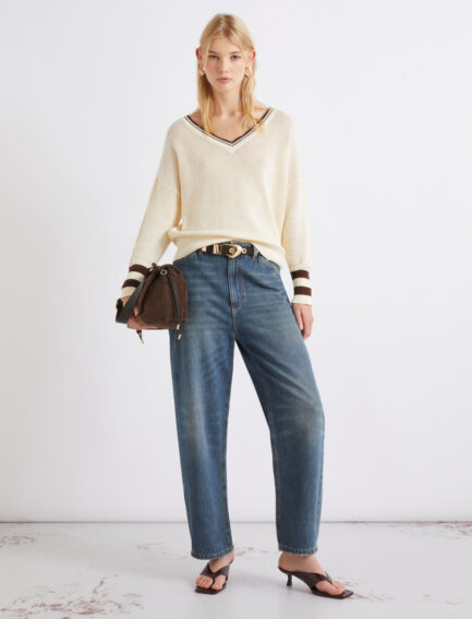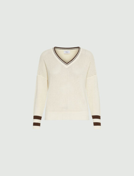 Maglione in cotone con scollo a V – BIANCO LANA