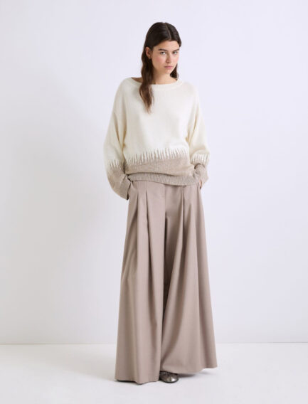 Maglione in tessuto di pura lana con inserti in lurex – BIANCO