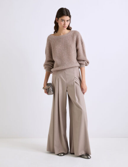 Maglione in misto mohair decorato con micro paillettes – COGNAC