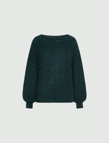 Maglione in misto mohair decorato con micro paillettes – VERDE BOTTIGLIA