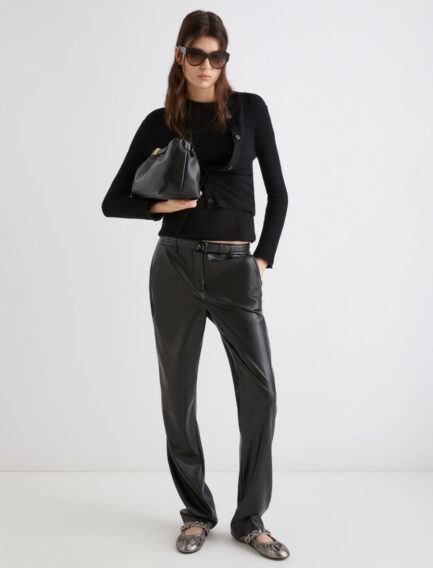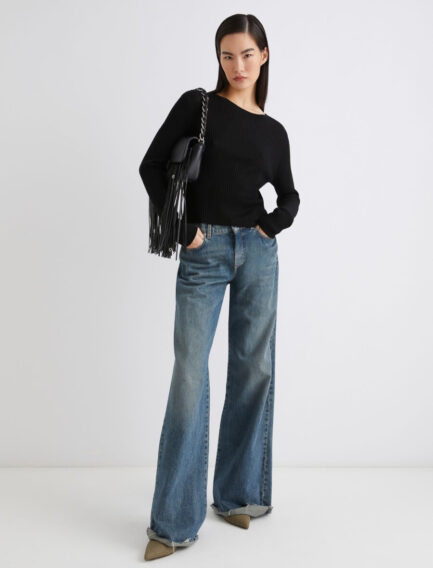 Maglione ultraleggero a coste – NERO
