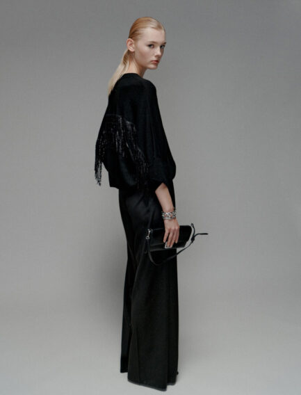 Maglione in misto mohair decorato con micro paillettes – COGNAC
