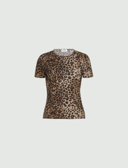 T-shirt in tulle jersey con stampa animalier – NATURALE