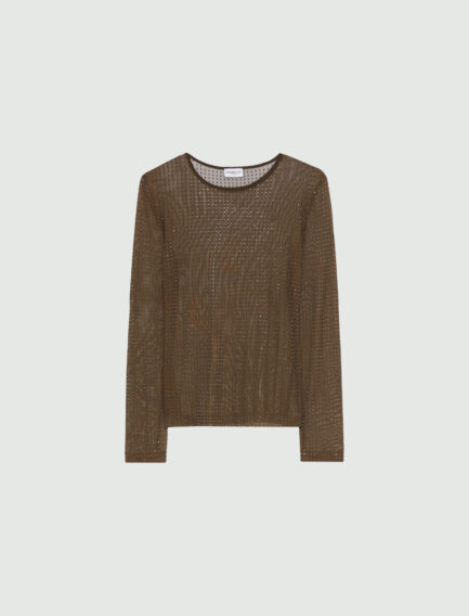T-shirt in viscosa con decorazioni in lurex – VERDE