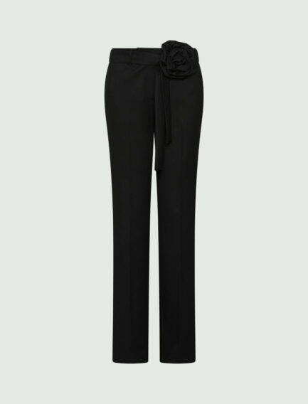 Pantaloni svasati con dettaglio cintura decorato con fiori – NERO