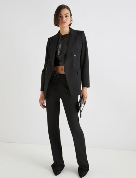 Pantaloni svasati in misto lana elasticizzata – NAVY
