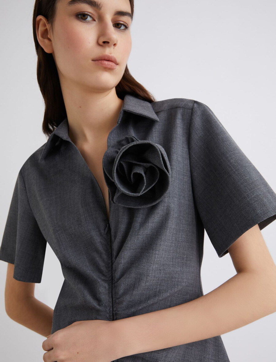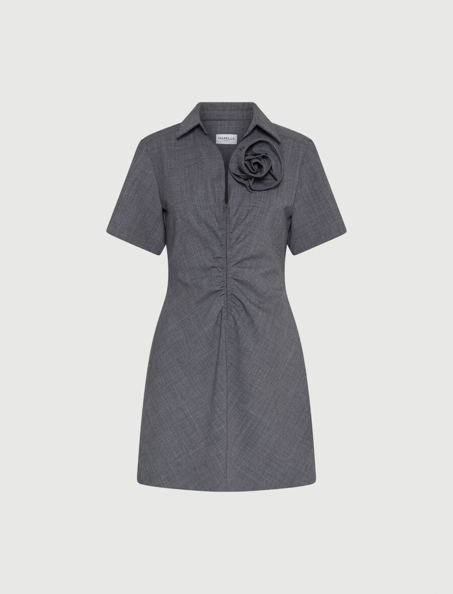 Con le sue arricciature sul davanti e la spilla a forma di fiore in tessuto, questo nuovo abito attirerà l’attenzione e troverà un posto speciale nel tuo guardaroba. Provalo con le ballerine argentate e una mini borsa coordinata per un look da città pronto all’uso.