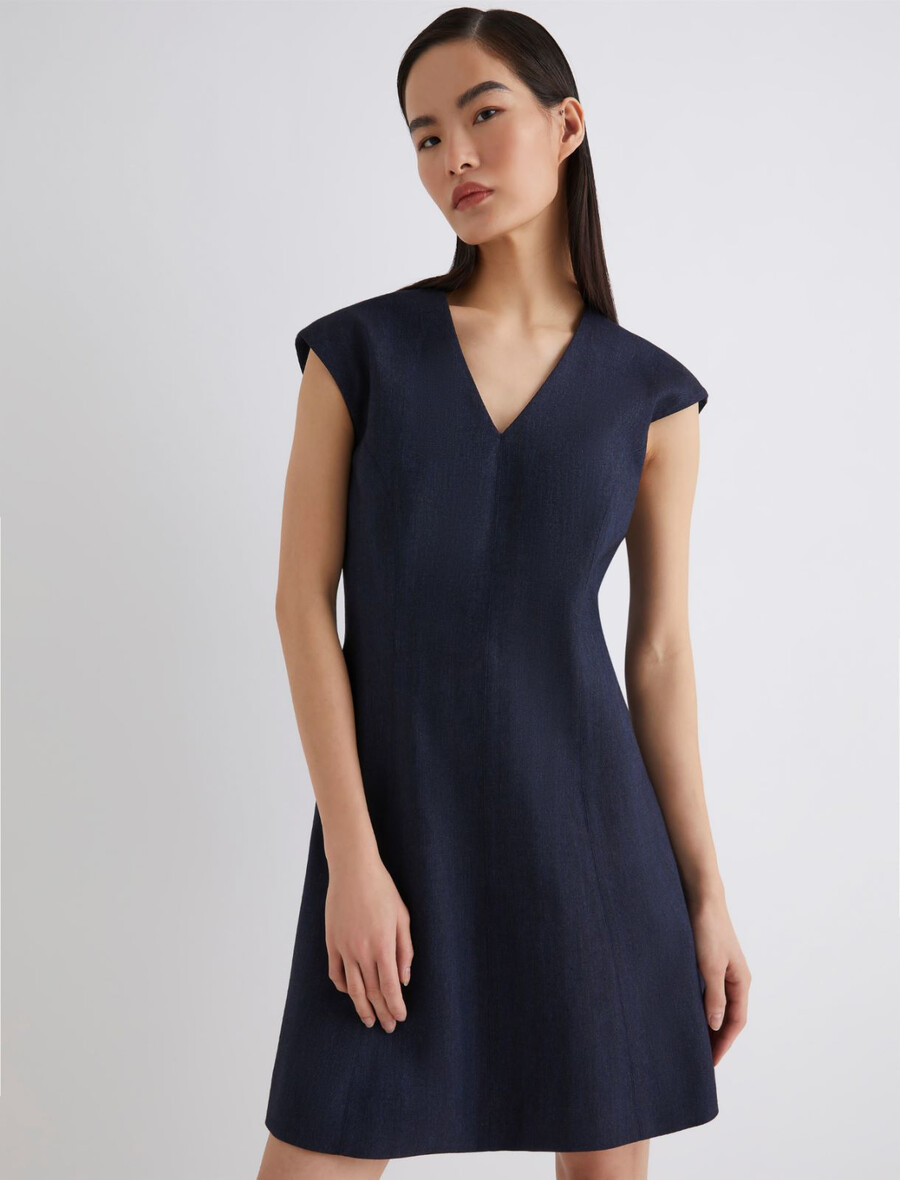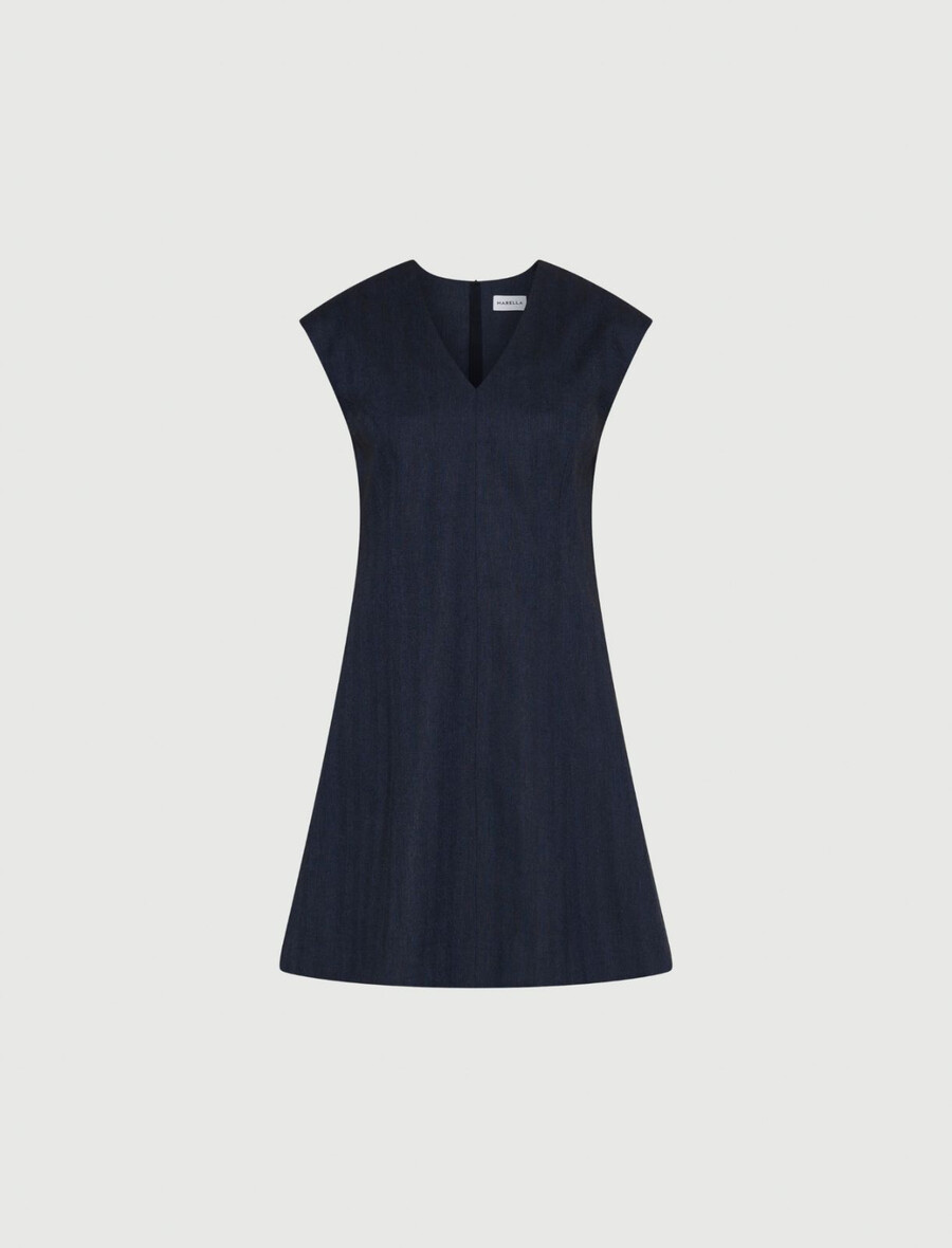 - Abito in tessuto misto lana e viscosa a spina di pesce effetto denim
