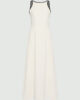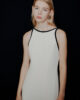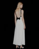 Dettagli a contrasto e una silhouette audace: questo nuovo abito unisce elementi grafici e sensualità, grazie al taglio con schiena scoperta. Il laccio sulla schiena aggiunge un tocco romantico.