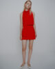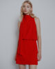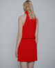 Questo abito svasato in envers satin emana nuove vibrazioni e un tocco di glamour. La fascia al collo e l’effetto blouson in vita vantano un fascino che ricorda gli anni Ottanta, coniugando femminilità e leggerezza.