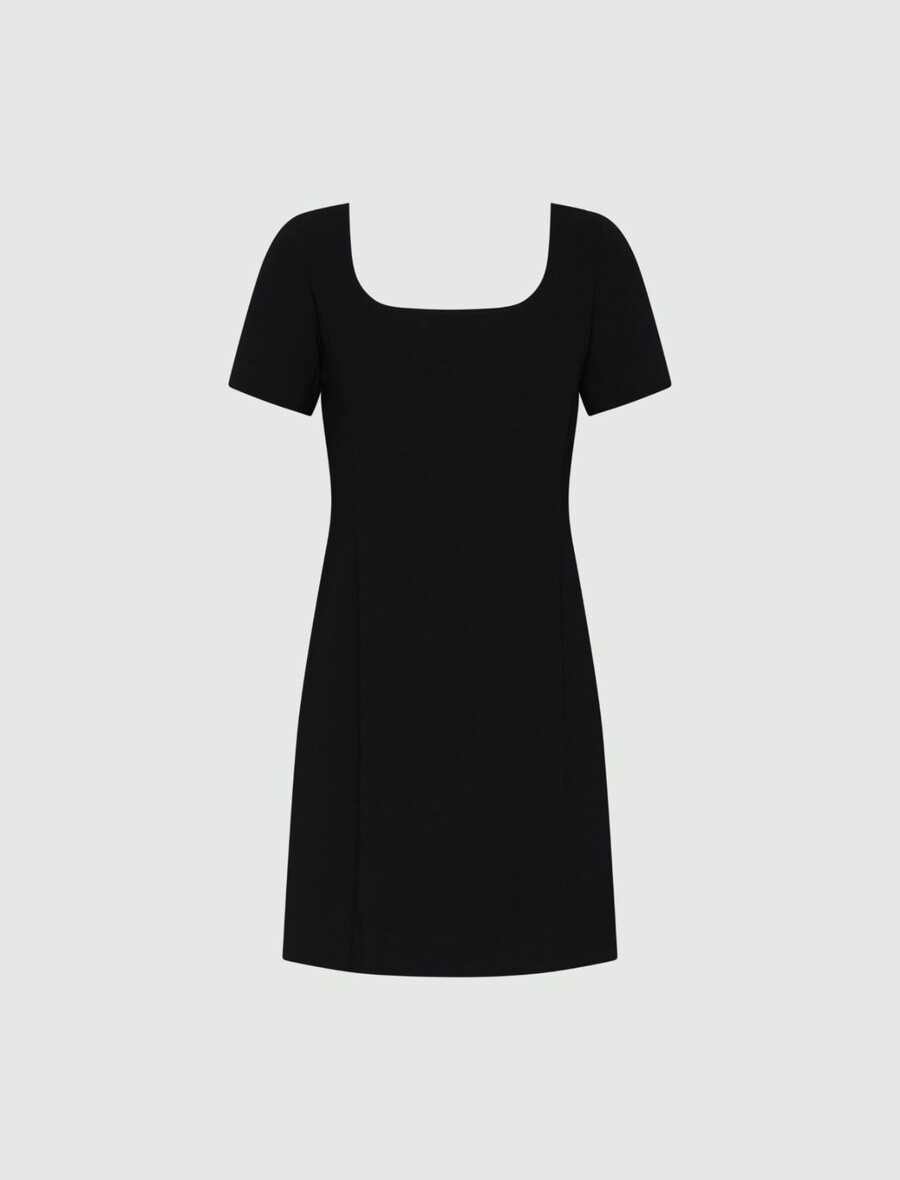 Questo versatile e perfetto abito aderente e svasato è davvero elegante. La silhouette rimane aderente, mentre la scollatura quadrata e le maniche stile T-shirt aggiungono un tocco moderno.