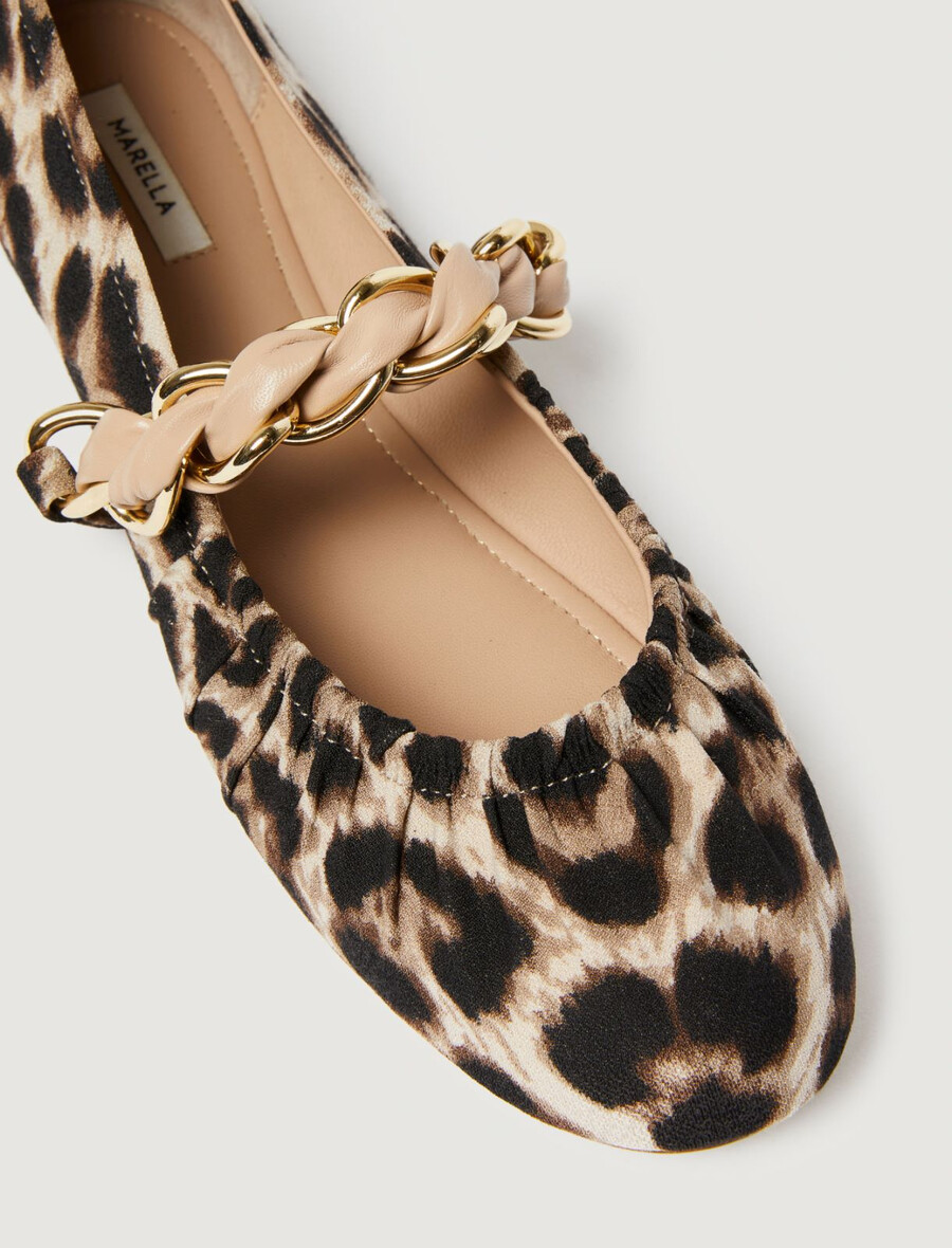 Un must-have da città, perfetto per ogni occasione: queste ballerine con colletto arricciato sfoggiano un look trendy, mentre il dettaglio della catena lungo il collo del piede aggiunge un tocco finale lucido.