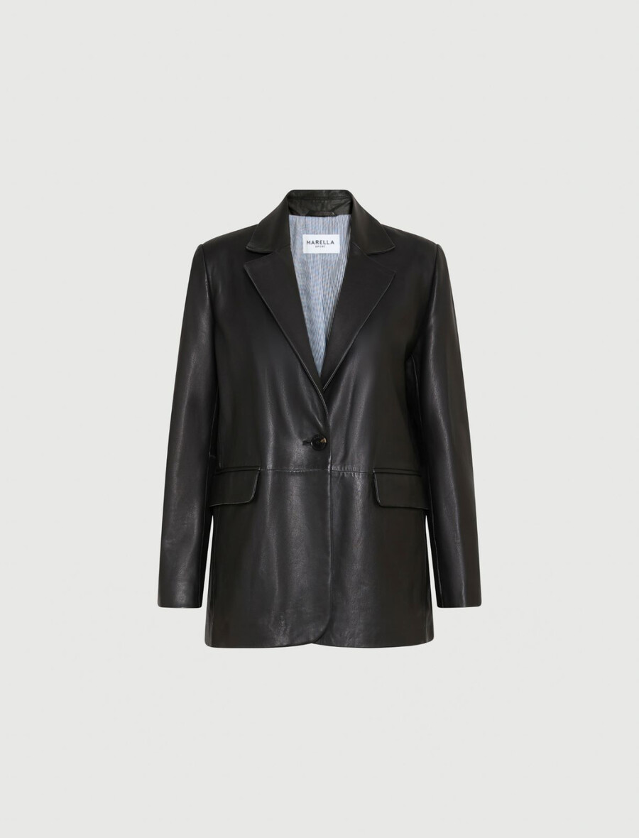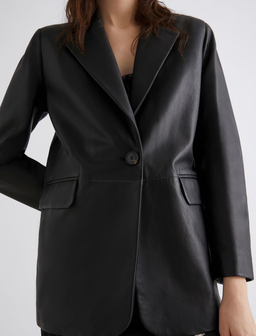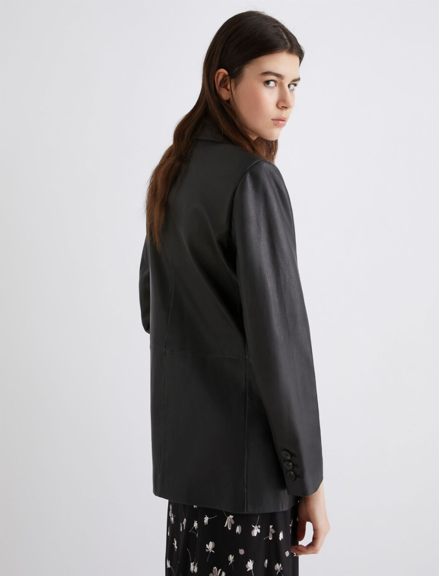 Il più urbano dei materiali con il taglio più raffinato: il nuovo blazer in pelle dall’aspetto vintage vanta revers lungo lo scollo e chiusura a un bottone. Provalo con un abito stampato o abbinalo a jeans e un top effetto lingerie, per un risultato sorprendente in entrambi i casi.