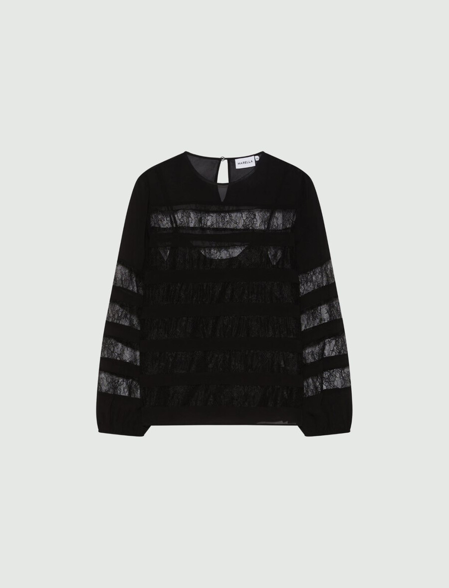 - Blusa in georgette di viscosa con dettaglio in pizzo