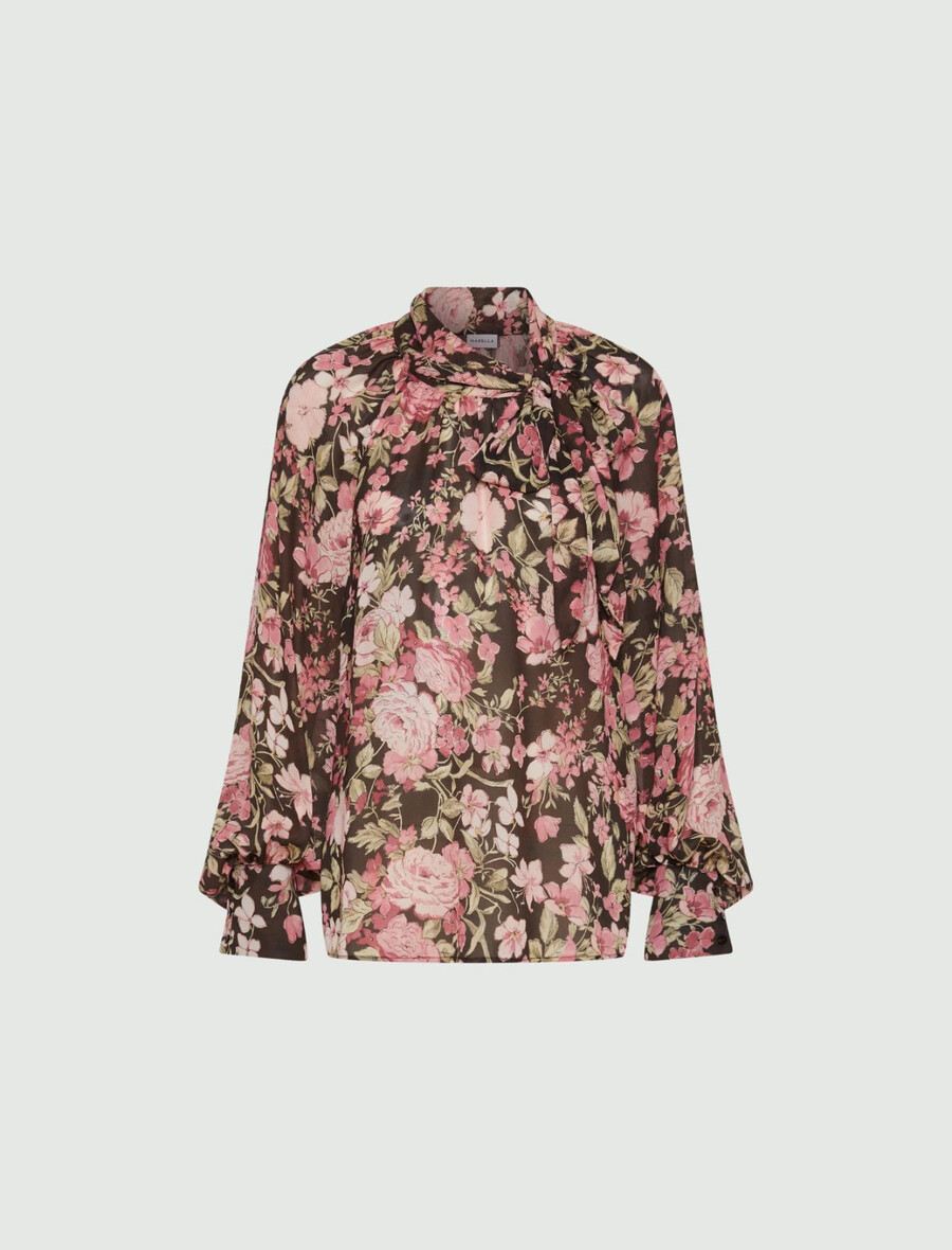 - Blusa in georgette di viscosa con motivo floreale e foulard