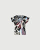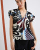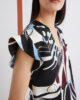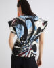 • Blusa in raso stampato con dettaglio macchina da 365 palline