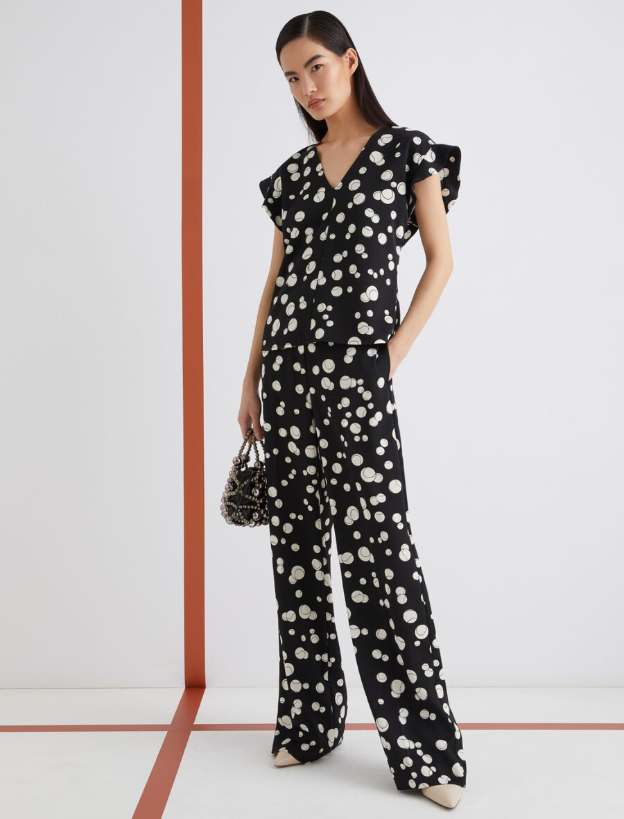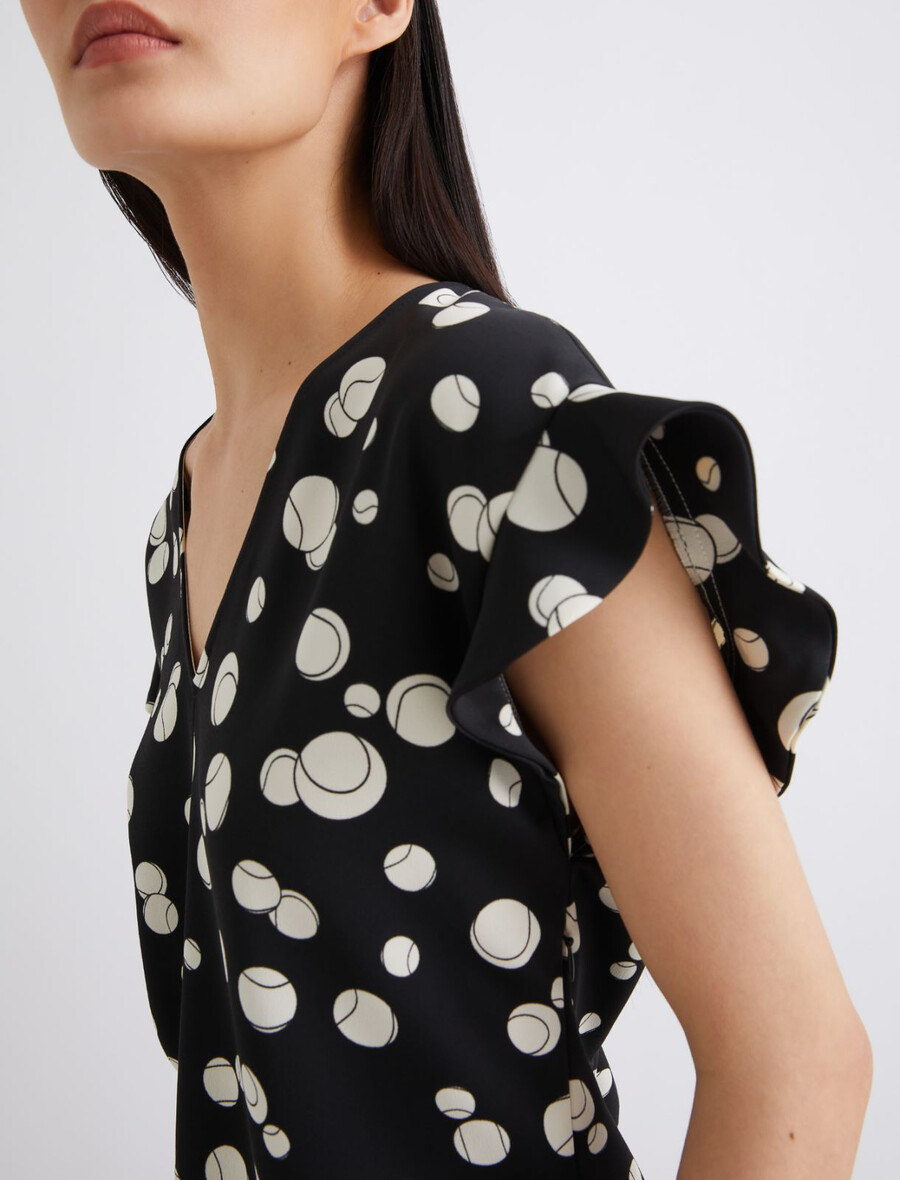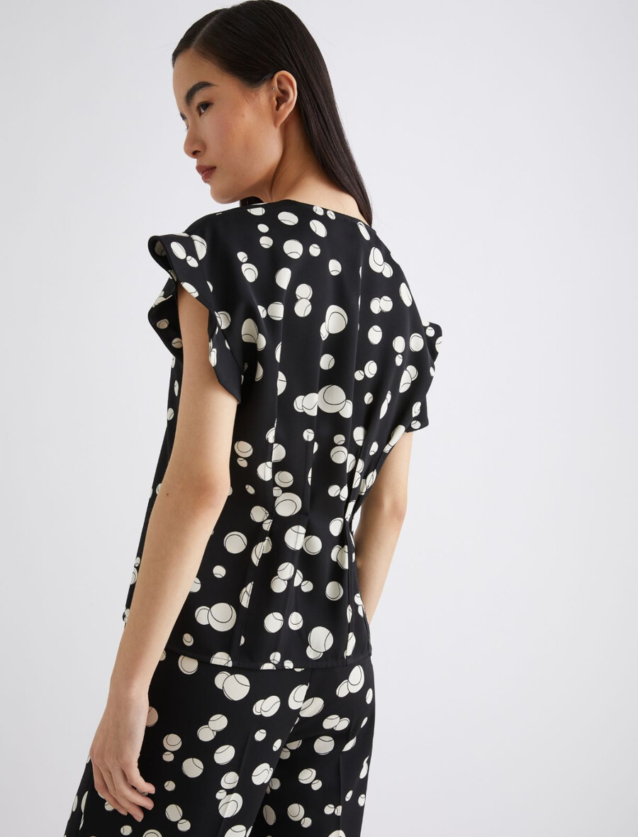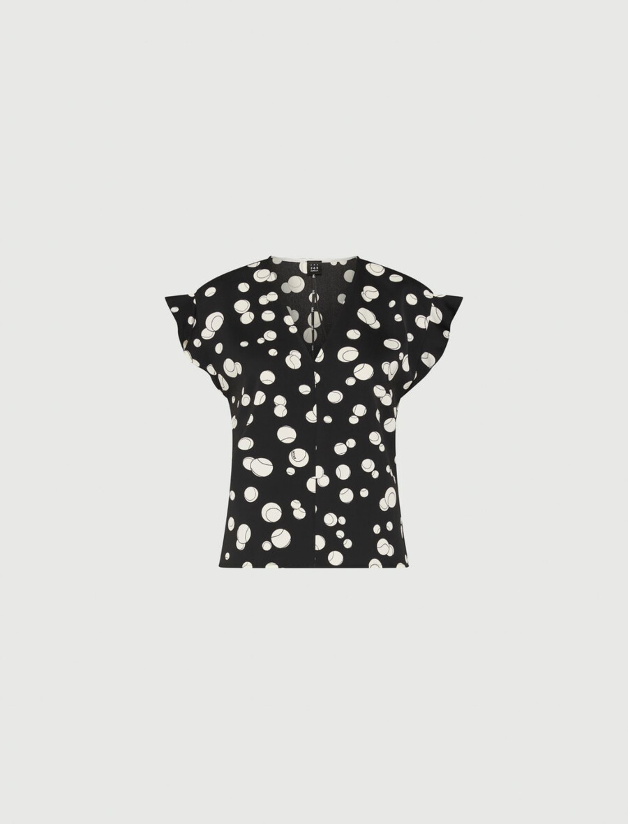 - Blusa in raso stampato con dettaglio macchina da 365 palline