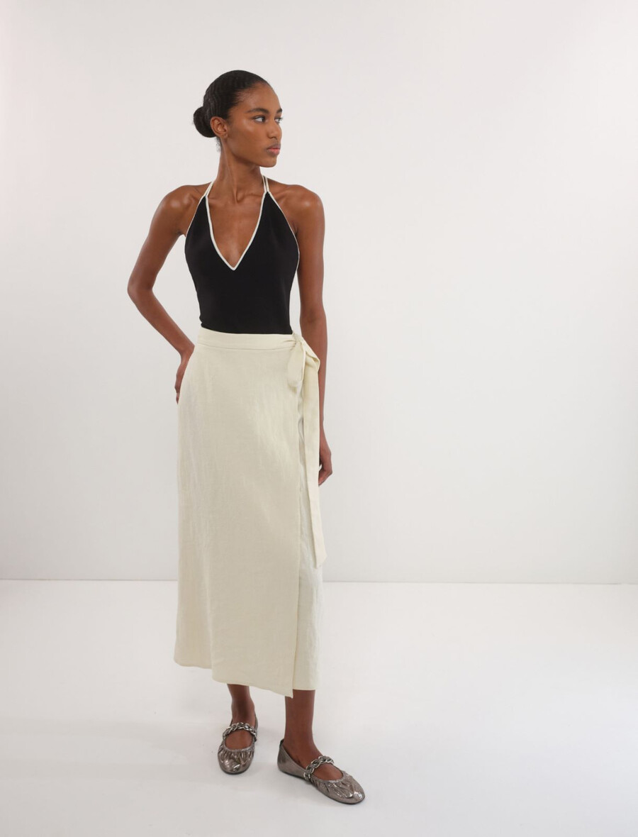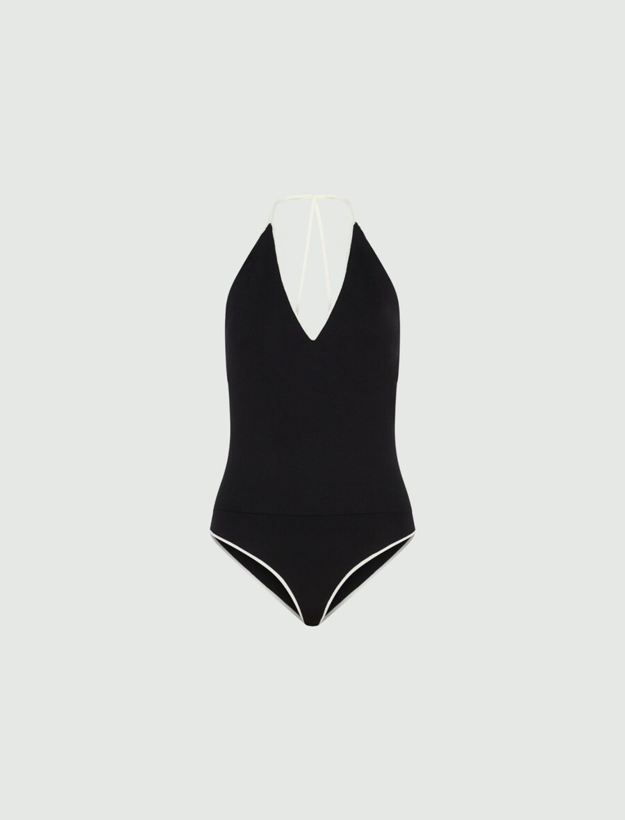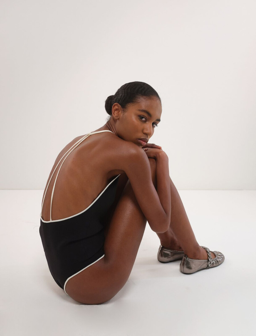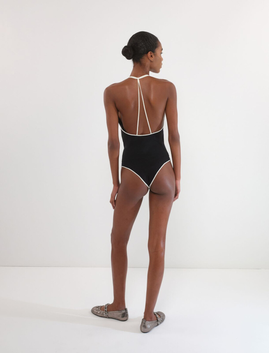 Sofisticato sotto un blazer ed elegante con i pantaloni: questo body con scollo a V vanta un bordo e spalline in delicato contrasto.