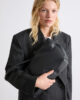 • Dettaglio arricciato attorno alla chiusura magnetica a scatto e dettaglio logo inciso