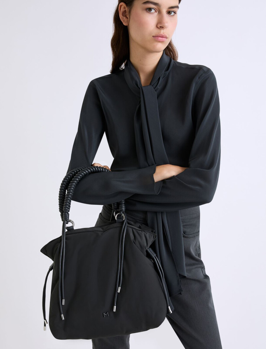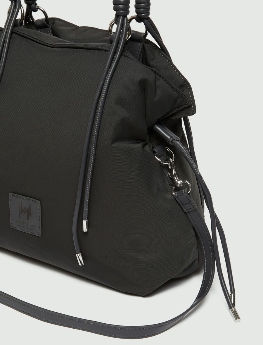 • Borsa shopping in tessuto tecnico imbottito con chiusura magnetica e coulisse laterali