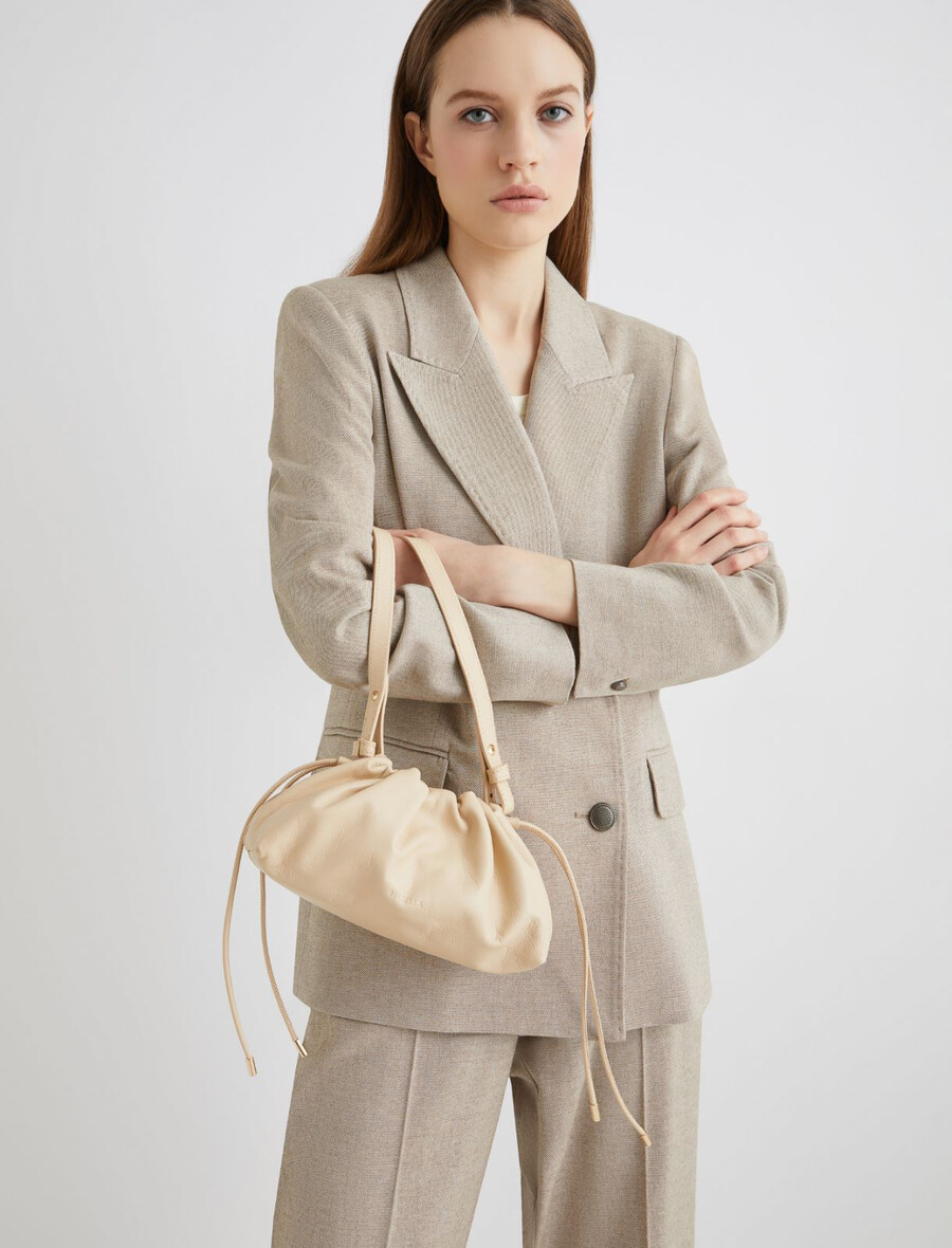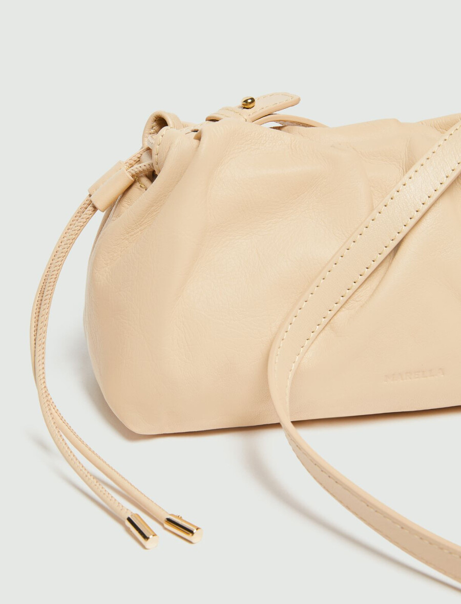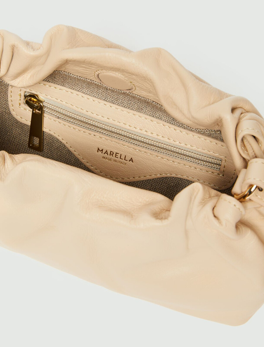 Questa borsa destrutturata in nappa è resa distintiva dal delicato dettaglio arricciato. La concia senza metalli testimonia la particolare attenzione di Marella per l’ambiente.