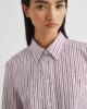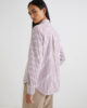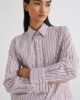 Un’ispirazione maschile ma un risultato finale femminile: la nuova camicia in cotone a righe presenta copribottoni rimovibili, glamour e femminili, che possono essere applicati al colletto e ai polsini.