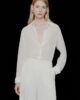 Una rivisitazione contemporanea della classica camicia maschile, realizzata in tessuto georgette per un’eleganza che trascende la stagione. Il taglio essenziale è illuminato dal dettaglio gioiello a forma di gemello, che aggiunge un tocco di lucentezza.