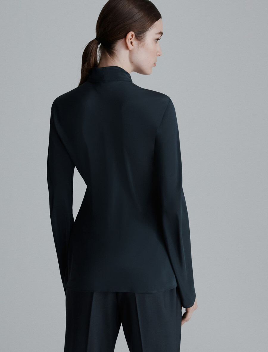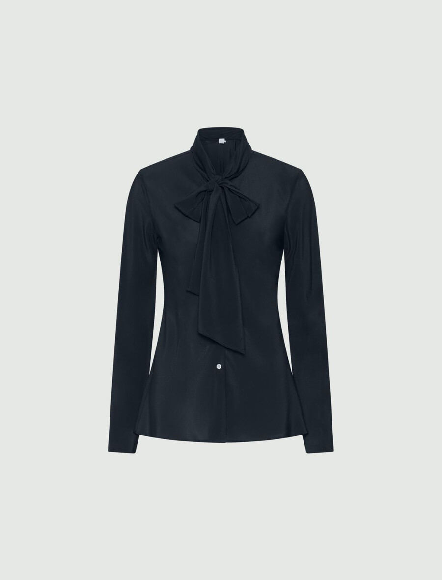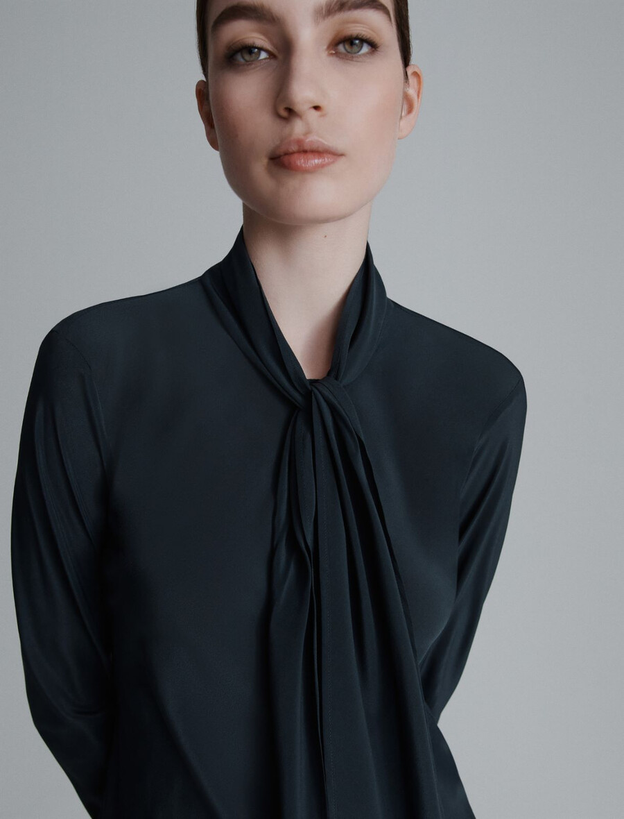 Il morbido fiocco sul collo aggiunge un tocco romantico a questa camicia in pura seta. Vivace se abbinata ai colori ed elegante con pantaloni e maglieria dal taglio contemporaneo.