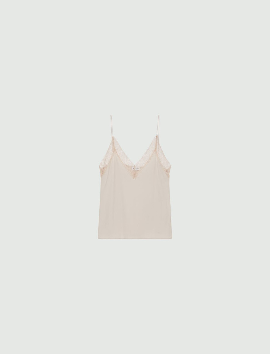 - Top in crêpe de chine misto seta con dettagli in pizzo