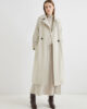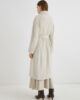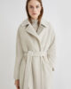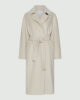 • Colletto a revers, chiusura doppiopetto con bottoni e dettaglio cintura