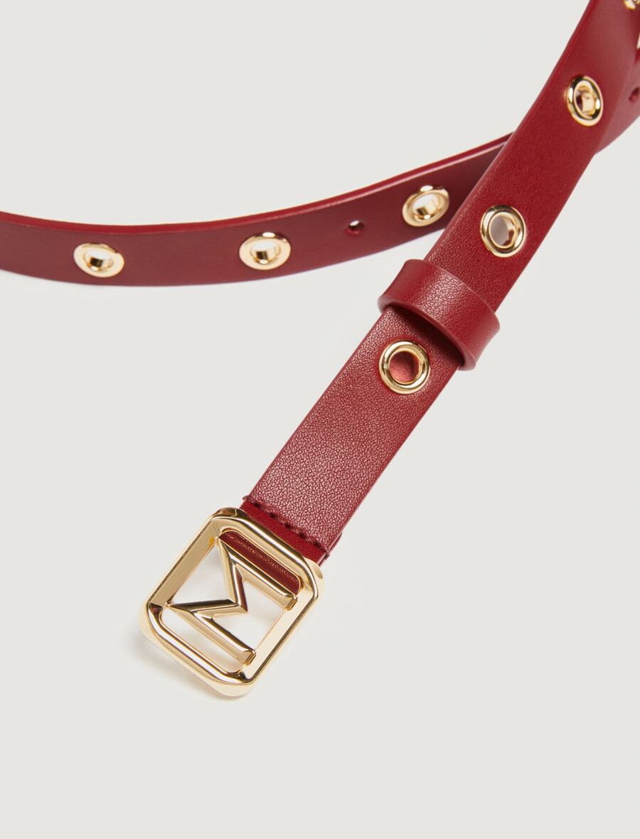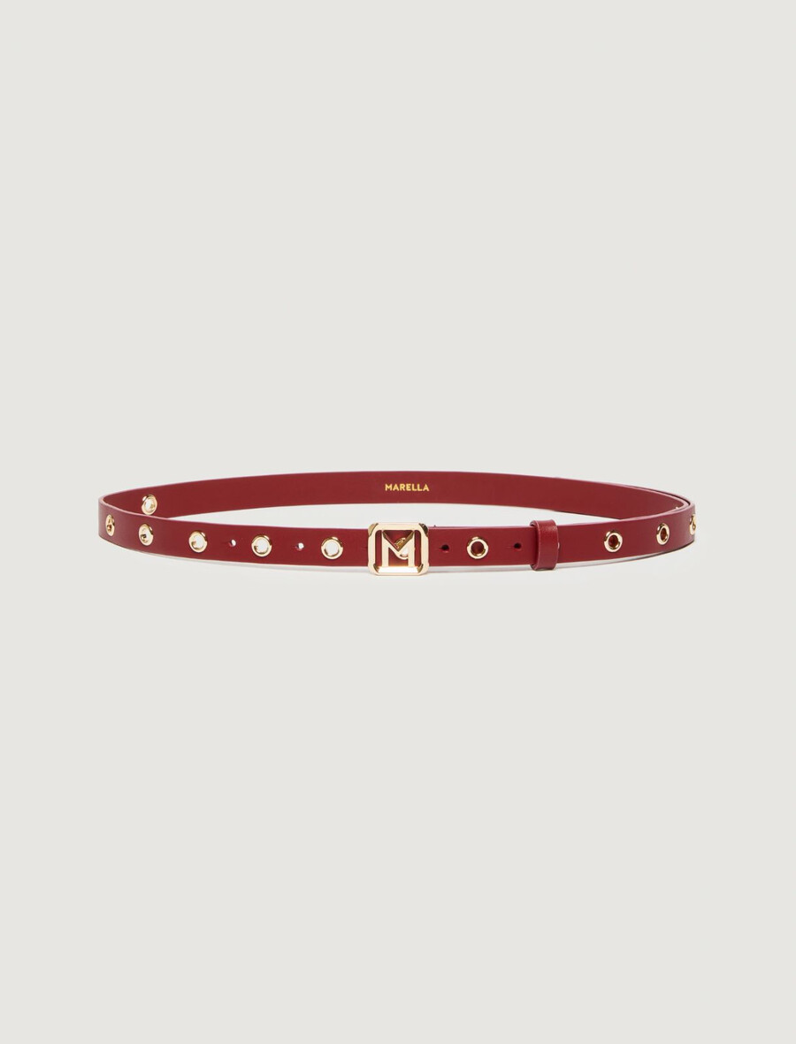 Rock e chic: questa nuova cintura in pelle è decorata con occhielli metallici su tutta la sua lunghezza. La dose perfetta di metallo per rendere più cool i tuoi outfit casual.