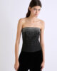 Questo corsetto dalla vestibilità slim è decorato con borchie e strass scintillanti dall’effetto cascata. La scollatura dritta e il design pulito lo rendono adatto ad abbinamenti eleganti con pantaloni in tinta o blazer dalla vestibilità comoda.