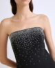 - La parte anteriore del capo è ricamata con borchie e strass