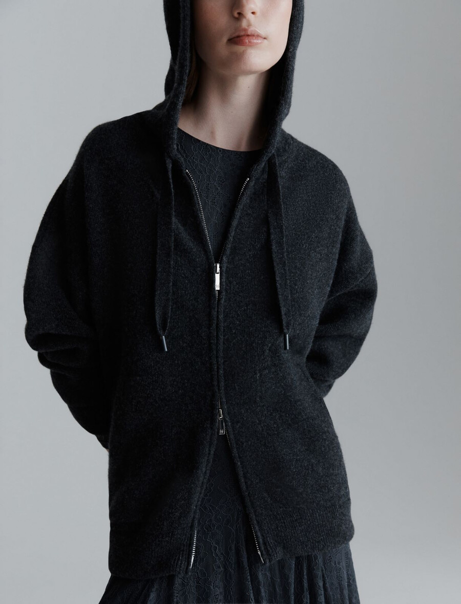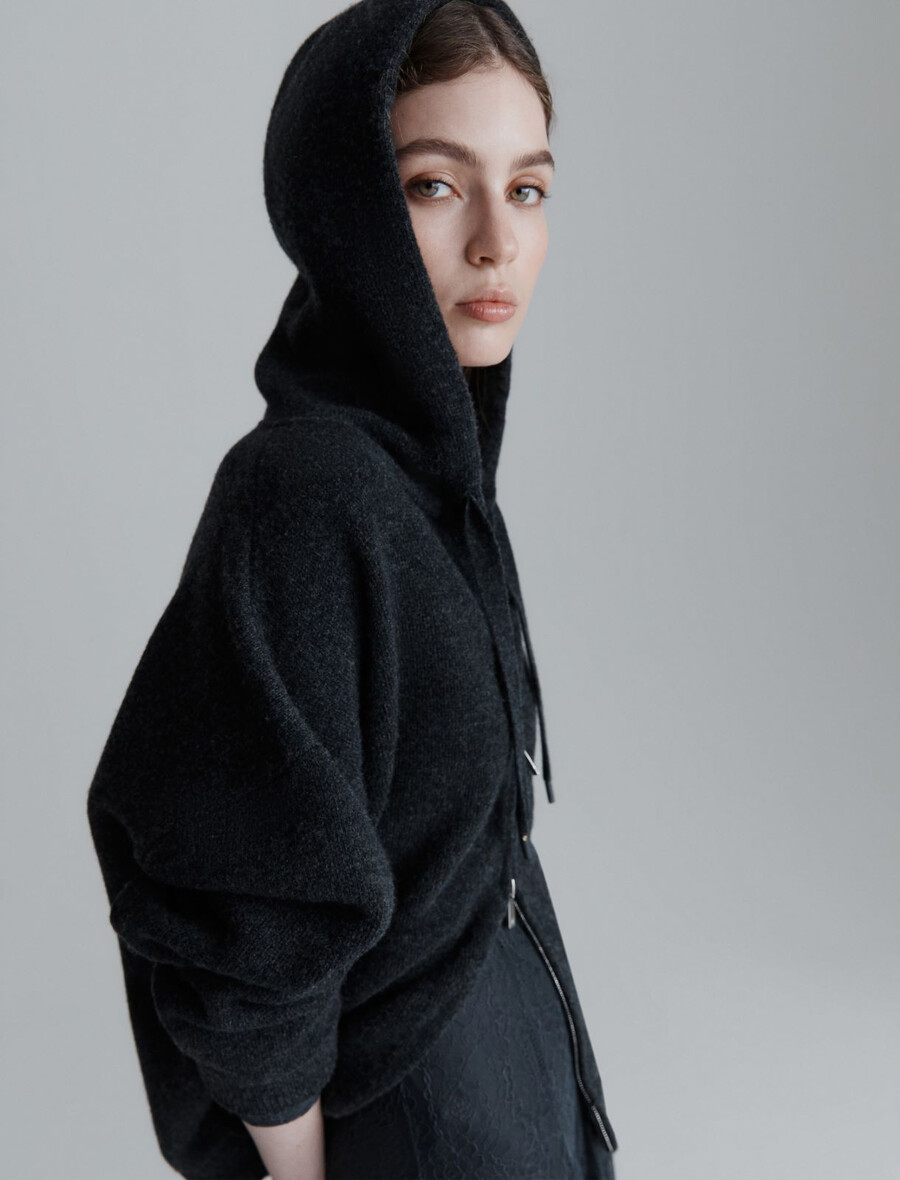 - Cappuccio con coulisse e alette in metallo verniciato tono su tono