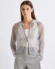Questo blouson in rete trasparente e fresco è decorato con una moltitudine di strass scintillanti. Esprimi la tua personalità con uno stile da star.