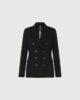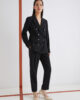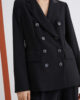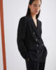 Questa giacca sartoriale doppiopetto si distingue per il suo carattere audace e il mood metropolitano. Il tocco lucido del raso sullo scollo evoca l’eleganza di uno smoking, creando un modello da indossare più e più volte con pantaloni e gonne in tinta.