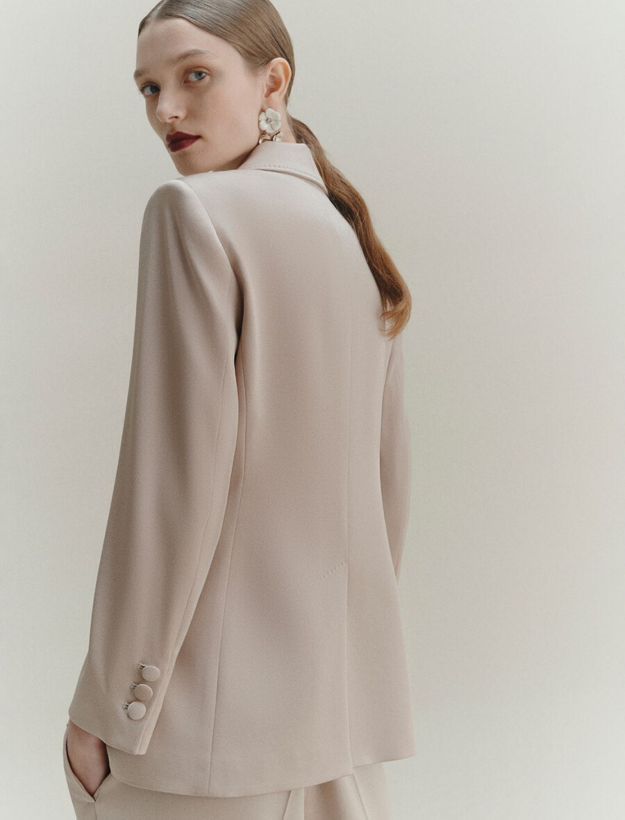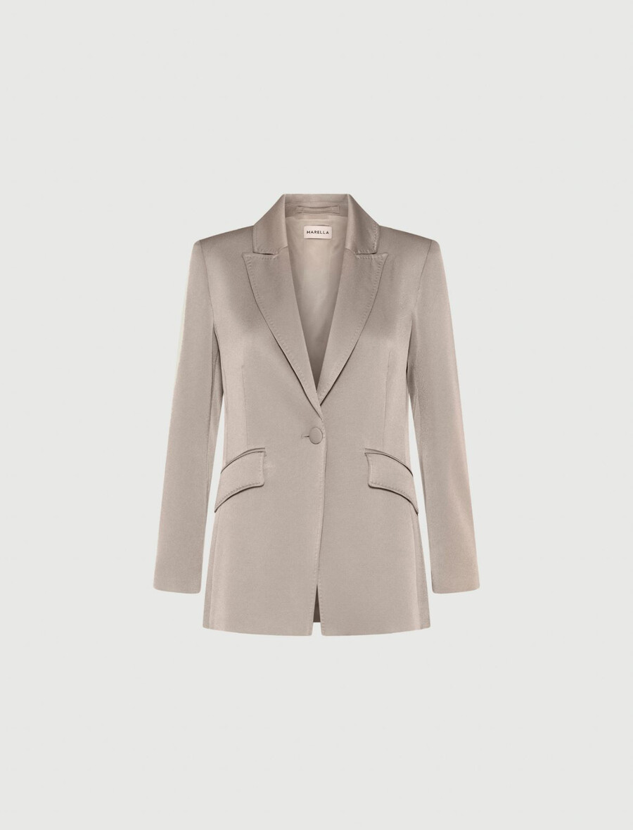 Questo blazer naturalmente elegante è realizzato in tessuto satinato lucido che scivola sulla pelle come un morbido abbraccio. Indossalo con i pantaloni coordinati per un look sofisticato o abbinalo ai tuoi jeans preferiti per un sorprendente look da città.