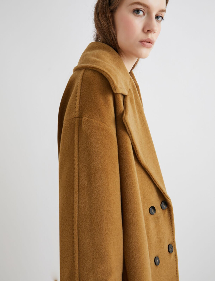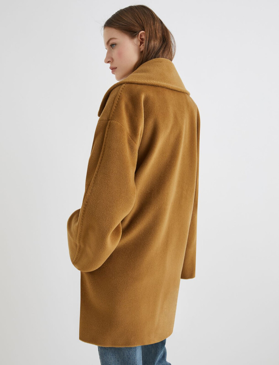 Questa giacca pesante in pura lana si distingue per i revers ampissimi, la vestibilità avvolgente e la chiusura doppiopetto. Questo modello versatile e caldo può essere indossato con un abito da lavoro o anche con i jeans, ottenendo lo stesso elegante risultato finale.
