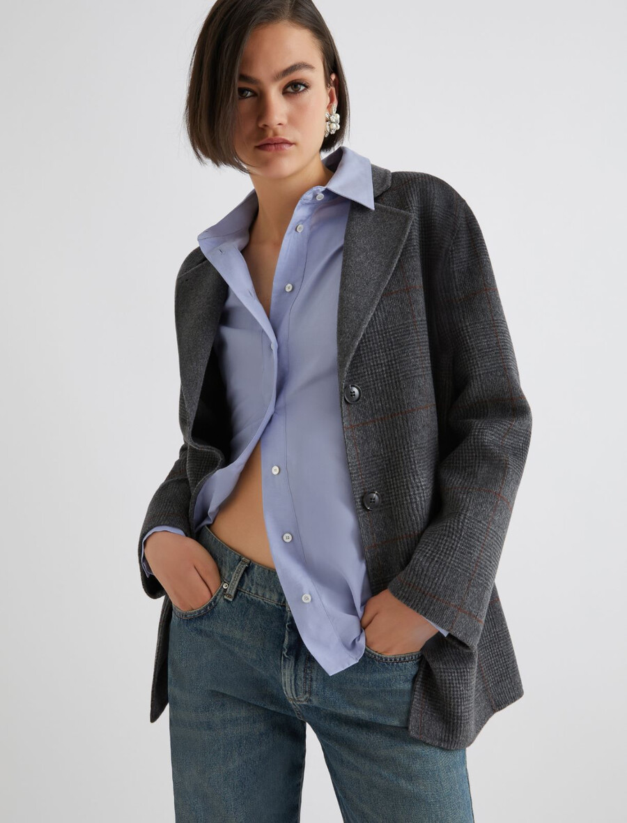 Questo giubbotto pesante double-face in pura lana è una scelta versatile per la città: il modello morbido e avvolgente presenta una leggera sagomatura sui fianchi per una silhouette contemporanea.