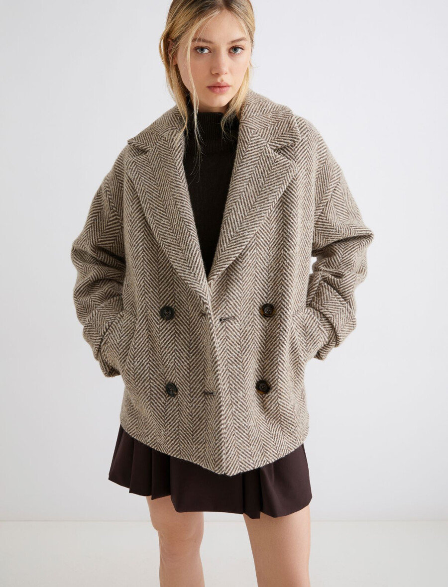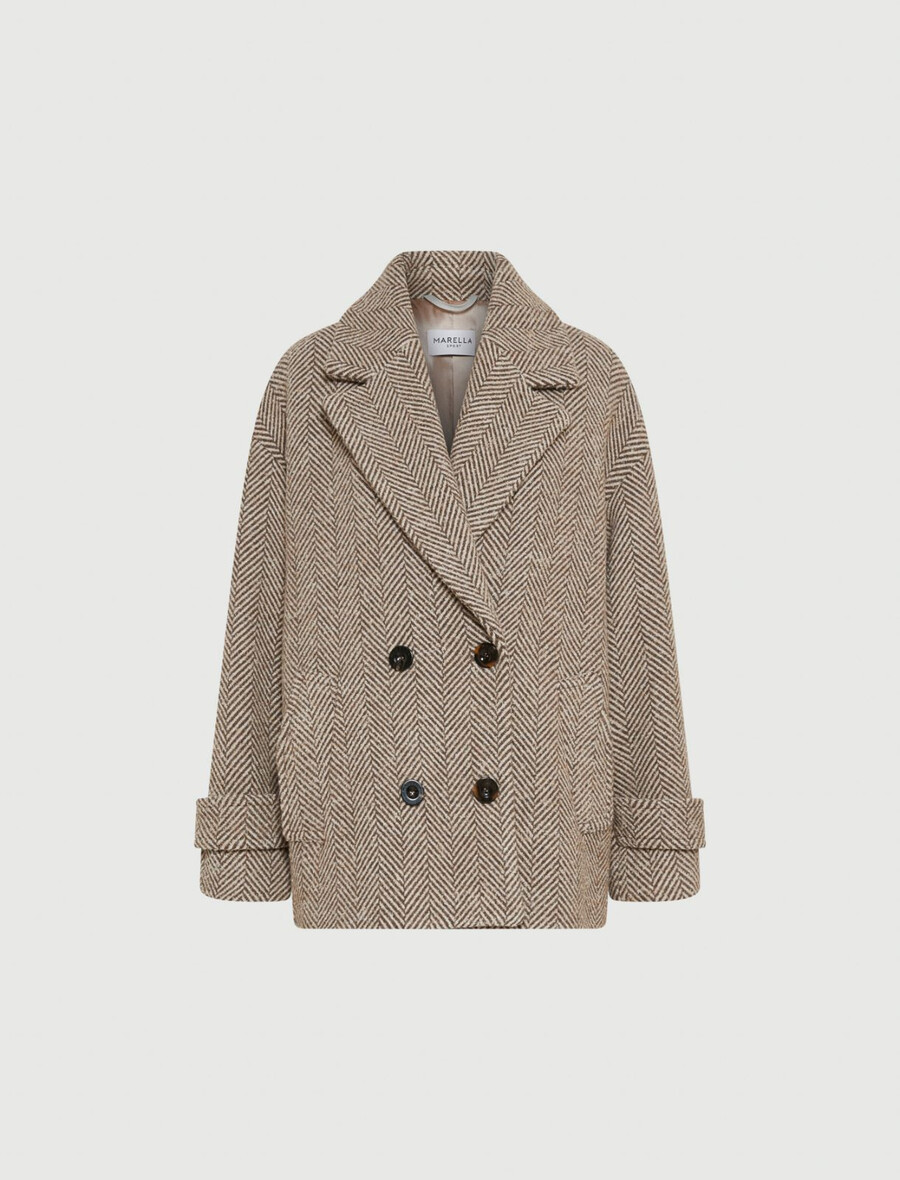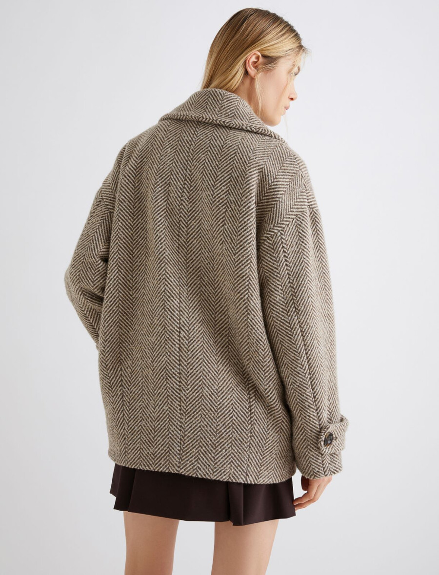 - Giacca pesante foderata in tessuto bouclé misto lana a spina di pesce