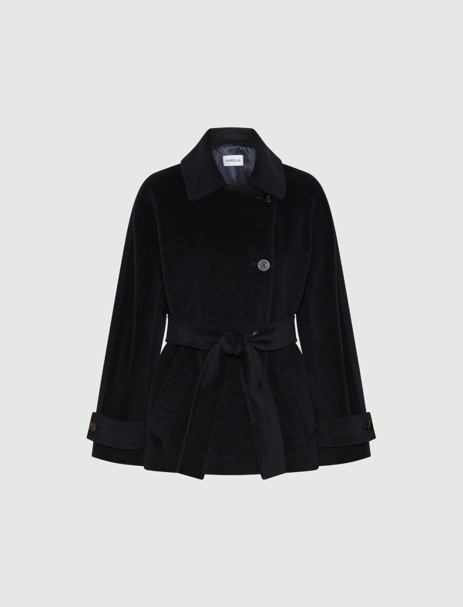 - Colletto a camicia e chiusura a doppiopetto con bottoni su un lato