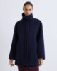 Look sportivo e materiali ricercati: il nuovo giubbotto in morbido panno di beaver di lana double-face sfoggia un taglio raglan tipico dei capi oversize più sportivi.