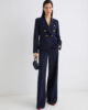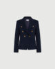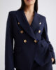 Blazer femminile dal carattere deciso con chiusura doppiopetto, impreziosito da bottoni metallici logati. Da abbinare a pantaloni palazzo e tacchi vertiginosi per una silhouette accentuata.