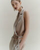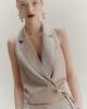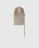 Un colletto a revers ultra-elegante e un design femminile a incrocio: questo nuovo modello di gilet ha tutto. Realizzato in tessuto satinato lucido per un risultato di stile, anche nelle occasioni più informali.