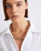 Questo girocollo a catena con finitura dorata è composto da maglie preziose. Le maglie audaci della catena sono state progettate per aderire al décolleté e si abbinano bene a camicie in popeline o top con spalle scoperte.