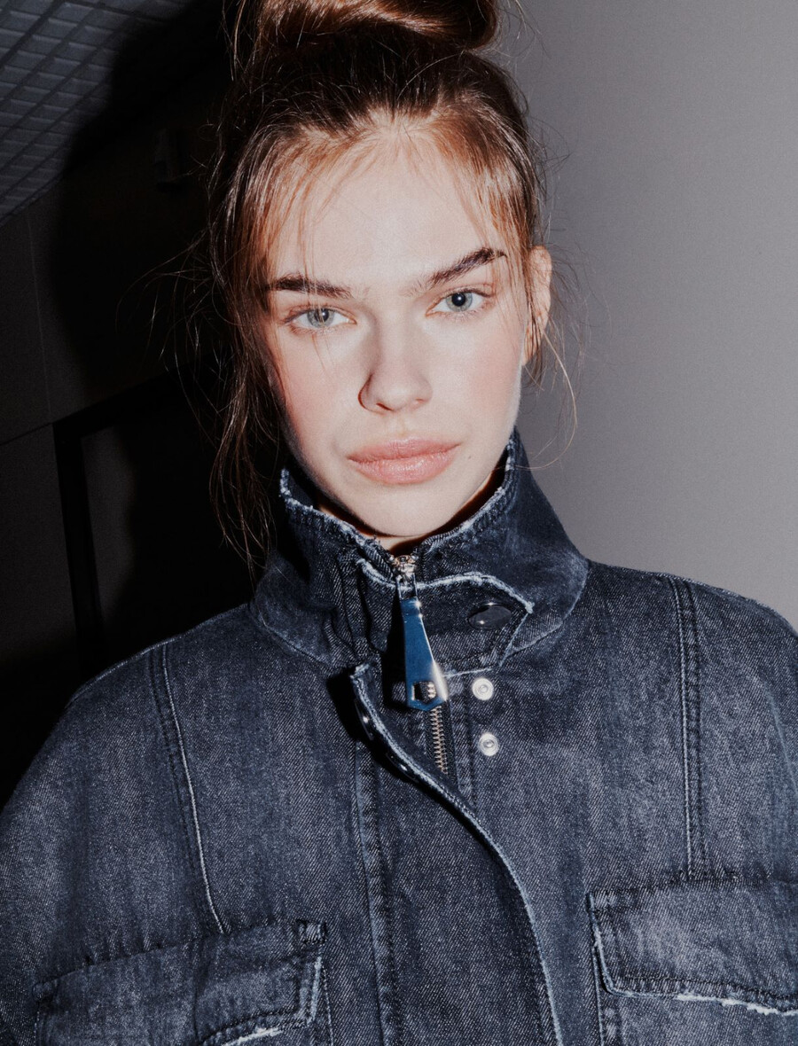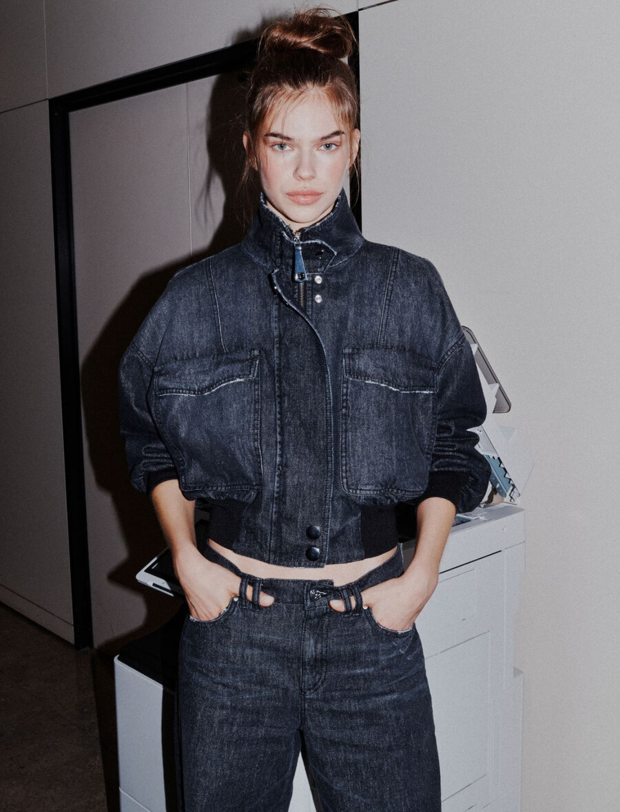 Una rivisitazione cool del bomber in denim con spalle larghe e vita corta. La vestibilità ultra femminile è perfetta per la città o per i giorni liberi.